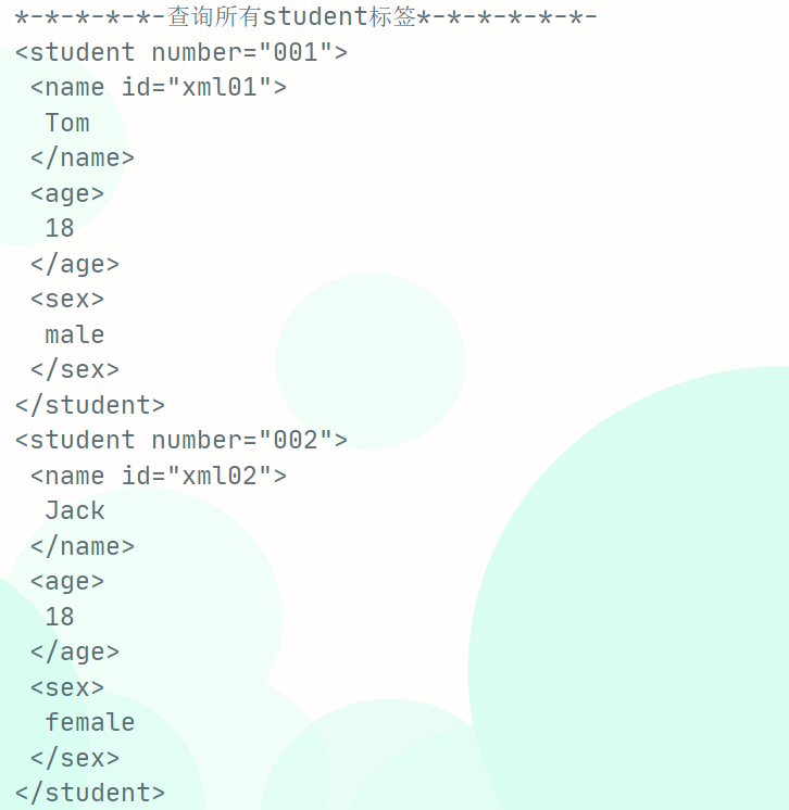 System.out.println("\n*-*-*-*-*-查询所有student标签*-*-*-*-*-*-");