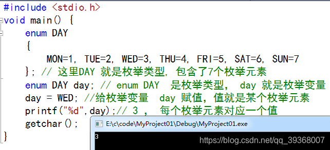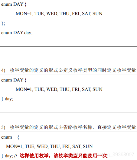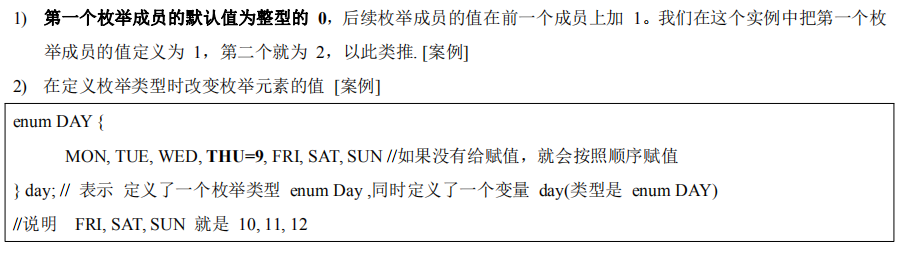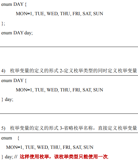 } day; // 表示 定义了一个枚举类型 enum Day ,同时定义了一个变量 day(类型是 enum DAY)
