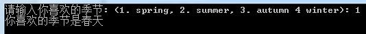 printf("请输入你喜欢的季节: (1. spring, 2. summer, 3. autumn 4 winter): ");