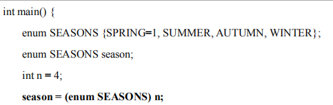 enum SEASONS season;//定义了一个枚举类型变量 season(类型 enum SEASONS )