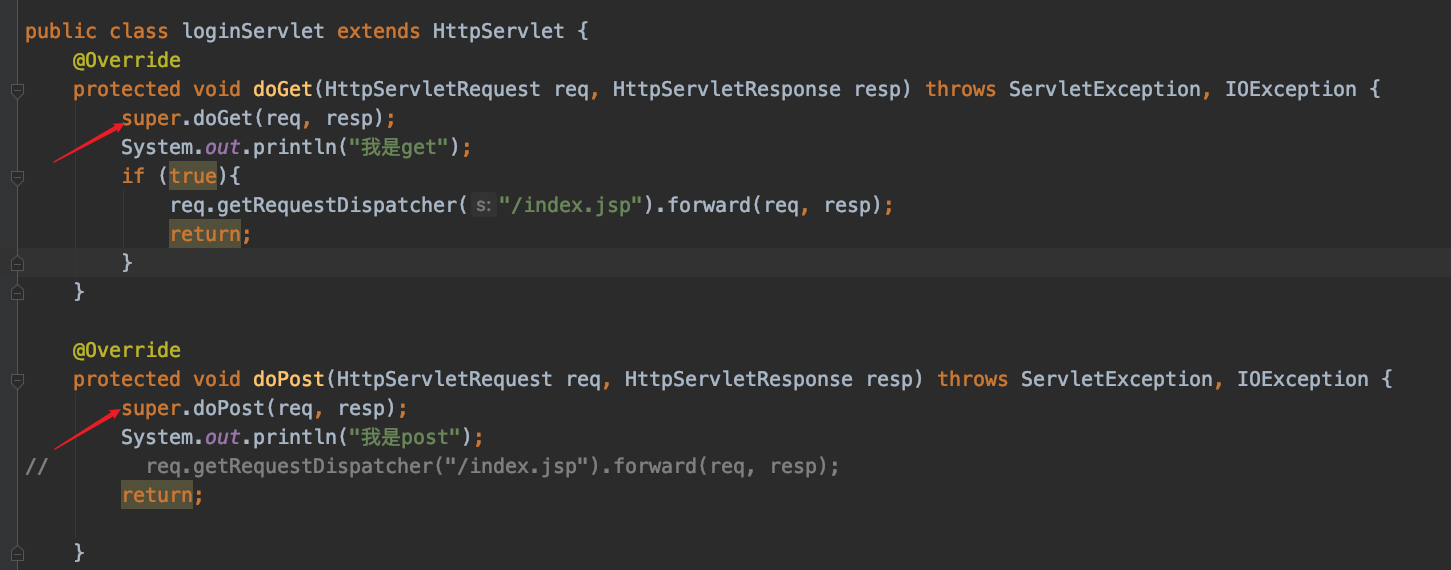 Mac在使用servlet时通过快捷方式生成doGet()和doPost()时会默认的调用super.doGet()和super.doPost()
