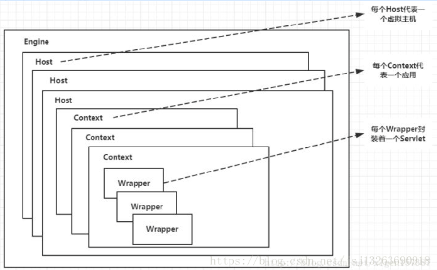 (4)Wrapper:每一Wrapper封装着一个Servlet;