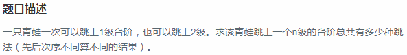 // 跳2级,剩下n-2级,则剩下跳法是f(n-2)