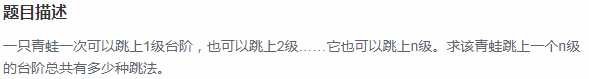 // 跳1级,剩下n-1级,则剩下跳法是f(n-1)