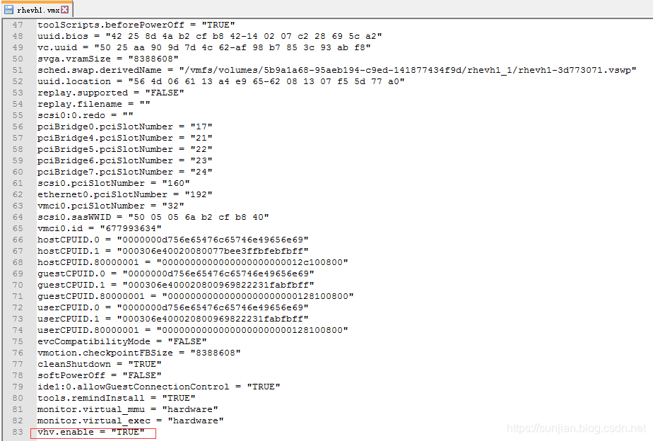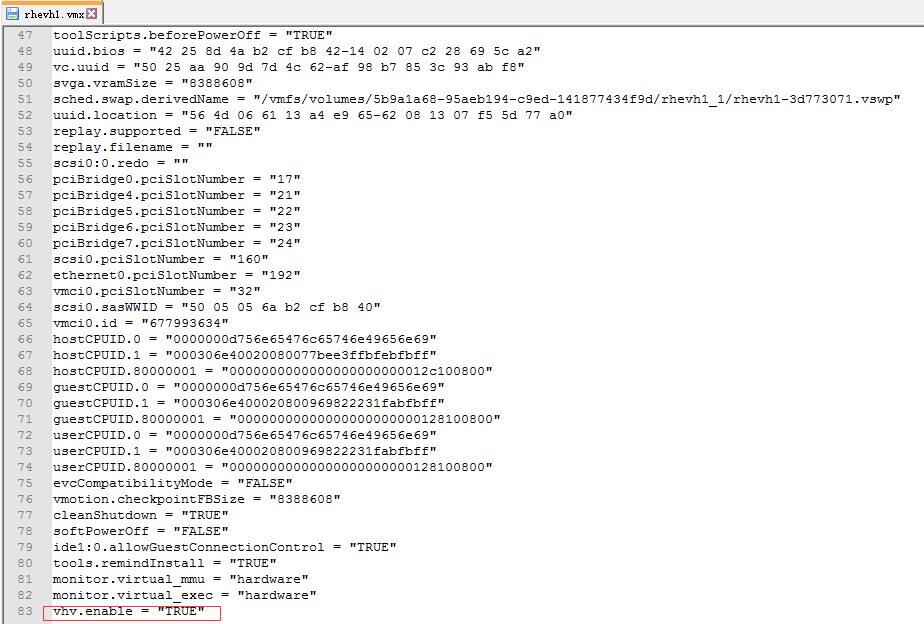 3、在配置文件最后一行添加vhv.enable="TRUE"