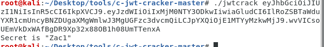 5、对JWT进行爆破攻击,得到我们secret。使用的工具:c-jwt-cracker;