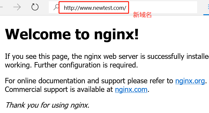 验证:在win10的浏览器中输入新域名www.newtest.com