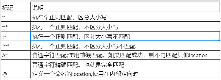 location ~ patt { } [正则匹配] - 正则匹配的常用表达式: