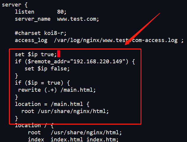 实验要求:今天公司业务版本上线,所有IP访问任何内容都显示一个固定维护页面,只有公司的IP才能访问正常。
