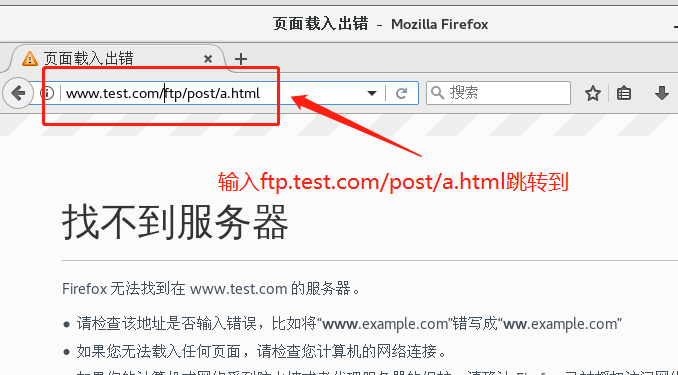 3、在centos7上访问 http://ftp.test.com/post/a.html ,会帮我们自动跳转 http://www.test.com/ftp/post/a.html , 此时域名跳转后的参数并没有变还是ftp