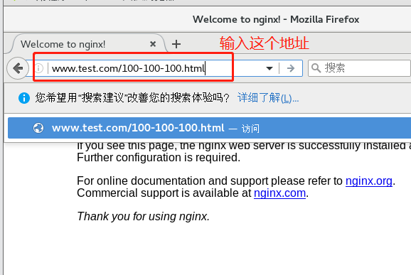 3、在浏览器访问 http://www.test.com/100-100-100.html,就会帮我们自动跳转到www.test.com网站