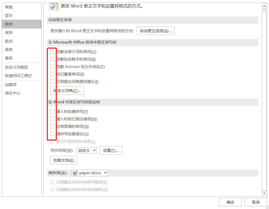 - 首先任意打开一个word文件,依次点击 文件--选项--校对--取消所有选项的勾--完成;