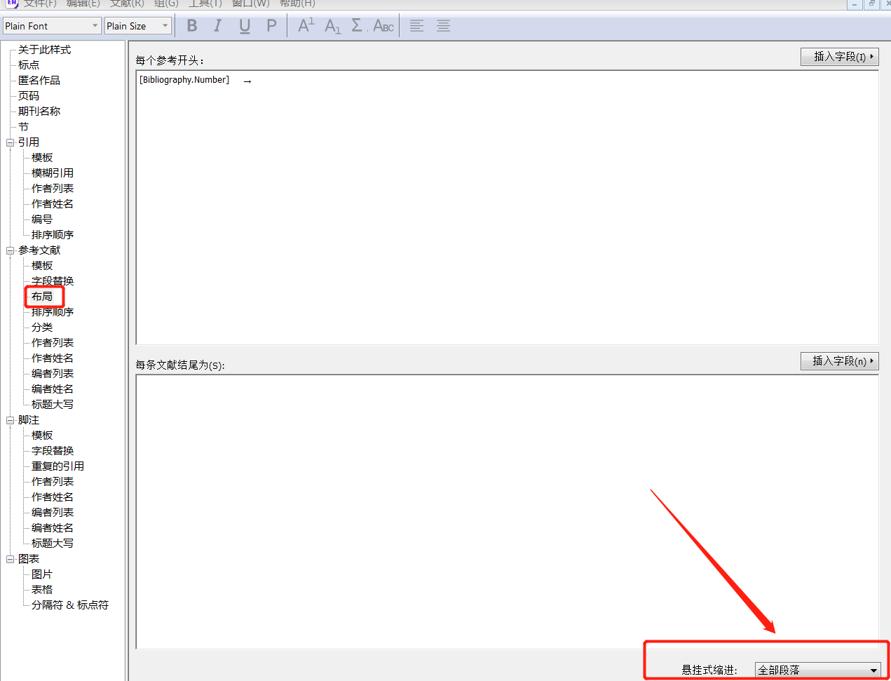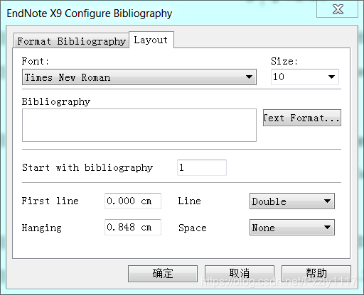 - 修改字体、大小、间距:子安word中EndNote选项中 -- 选择 bibliography -- 右下角的箭头 -- Configure bibliography -- Layout,出现问题,如下图所示(来源网上)。