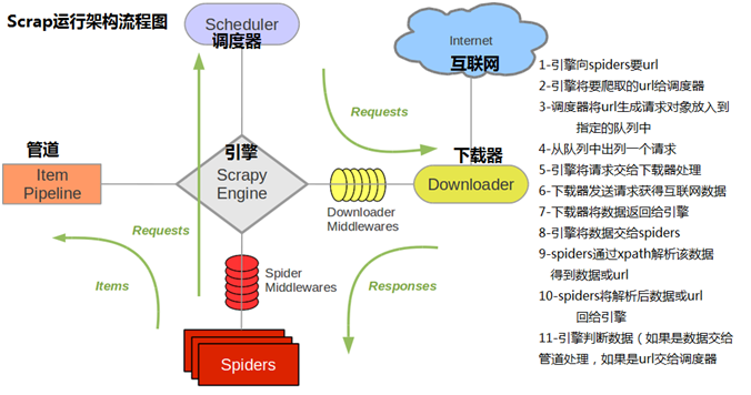 Scrapy运行架构流程图: