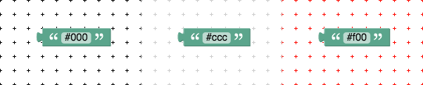 颜色属性是设置点颜色的字符串。注意英国的拼写。使用任何与CSS兼容的格式,包括#f00、#ff0000或rgb(255、0、0)。默认值为#888。以下是设置为“000”、“ccc”和“f00”的颜色示例: