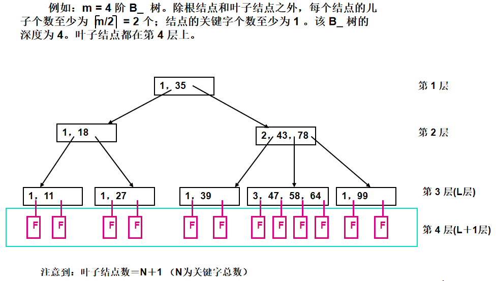 一棵m阶B-树或为空树,或满足下列特性:(为尽量简单,把考试不考的内容全部略去)