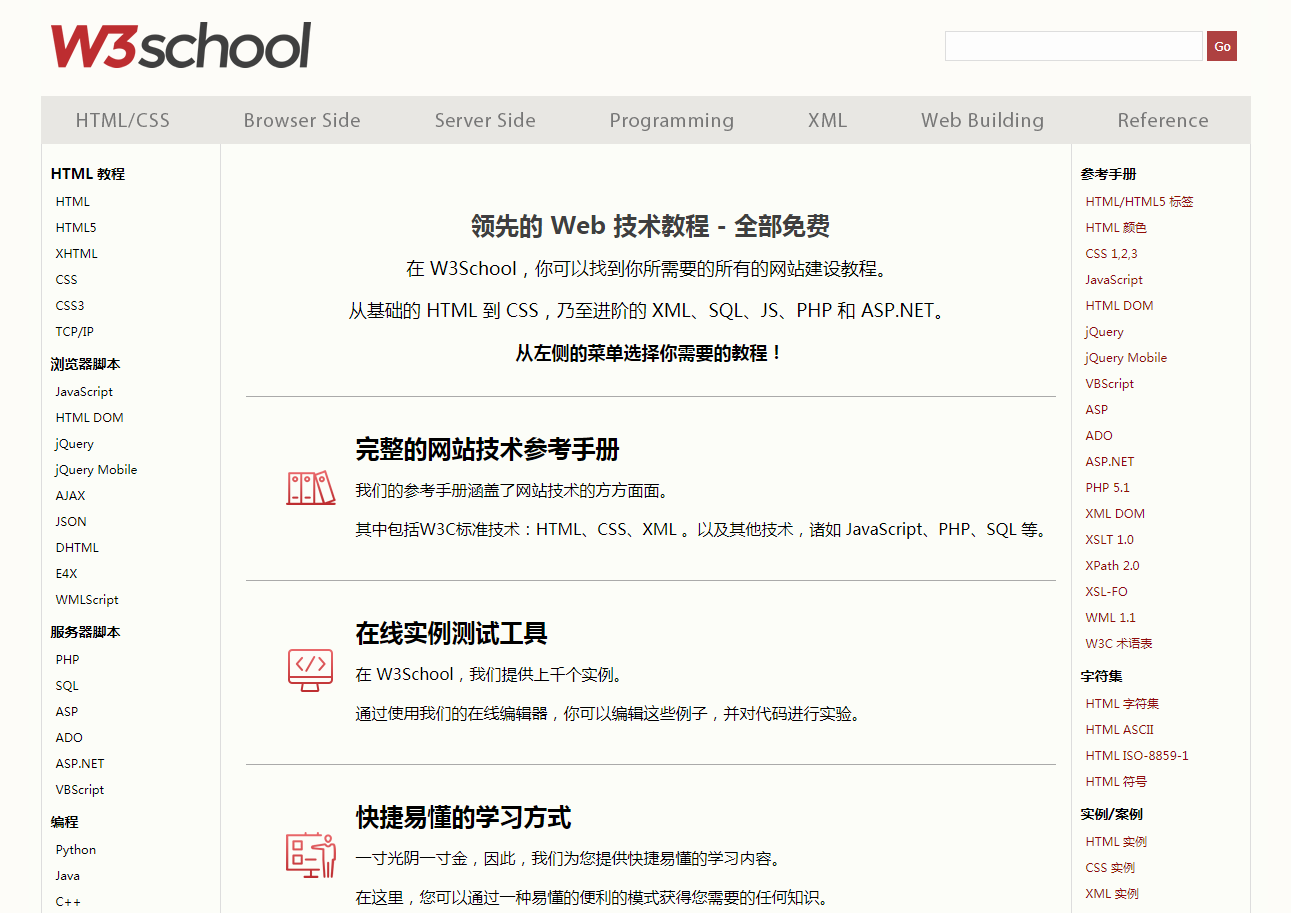 这是一个免费学习编程语言的在线学习网站,里面的知识浅显易懂,非常适合初学者。如果你对编程还不是很了解,那就可以试试这个网站。