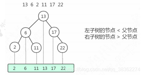 二叉查找树的特点:左子树所有的节点都小于父节点,右子树所有的节点都大于父