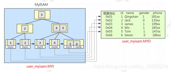 第二个是数据的磁盘地址,因为索引的作用就是去查找数据的存放的地址。