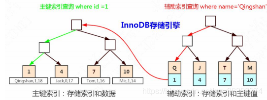 条件查询的时候就会找到索引里面的 id 的这个键值。