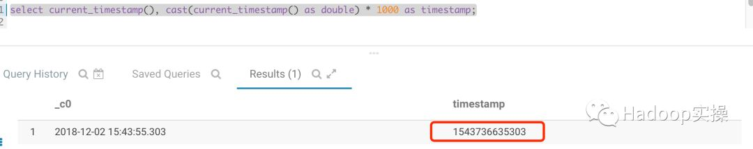 2.Hive获取当前时间毫秒级别的时间戳时需要使用cast函数将current_timestamp()转为double类型并乘以1000,则得到毫秒级别的时间戳。