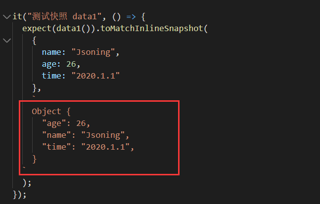 toMatchSnapshot会将参数将快照进行匹配expect.any(Date)用于匹配一个时间类型