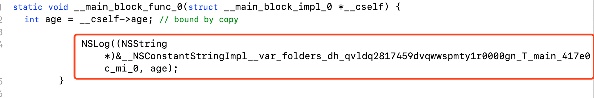 从上图可知,在构造block函数的时候,已经把age的值传进去了,传进去之后,我们来看一下做了什么操作: