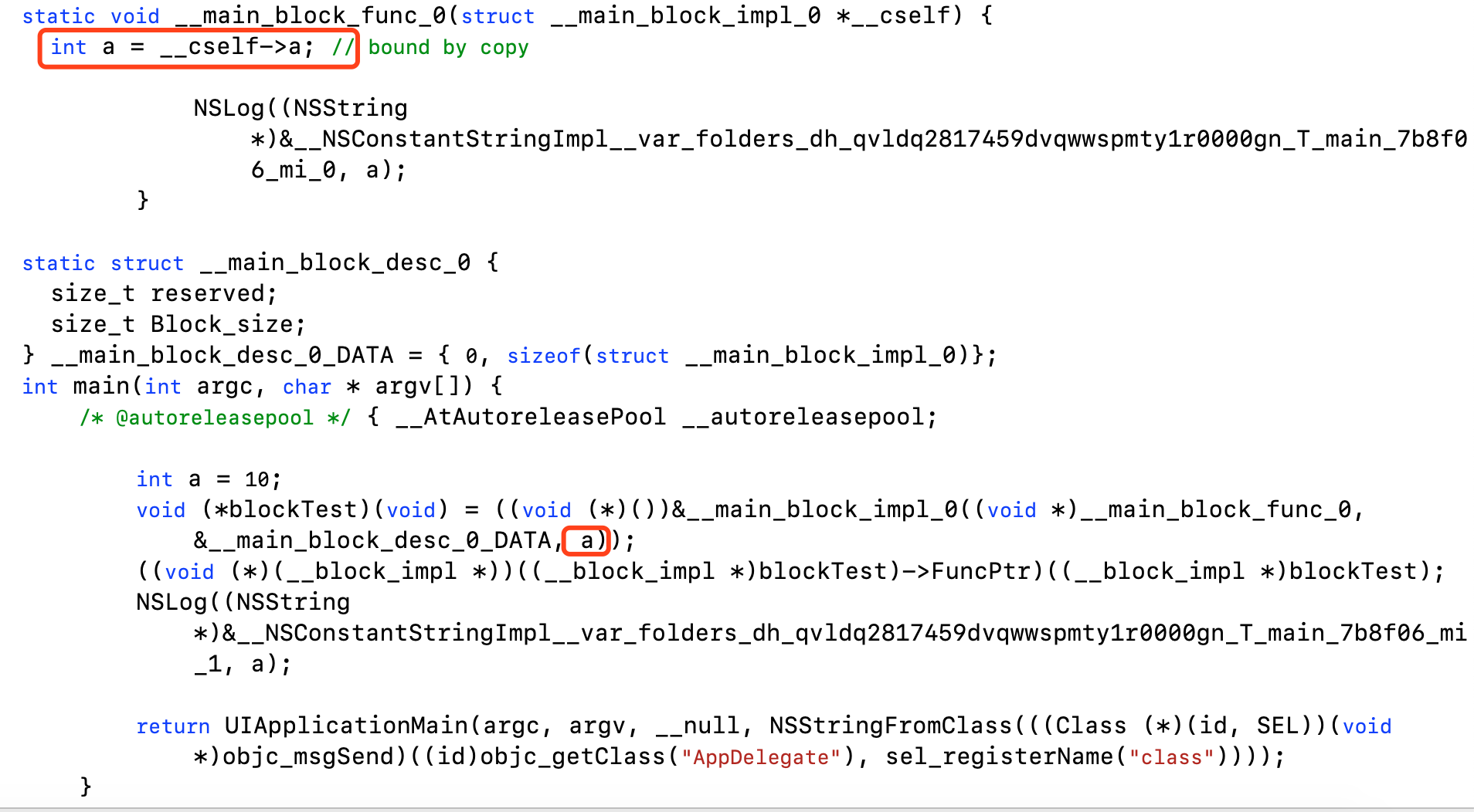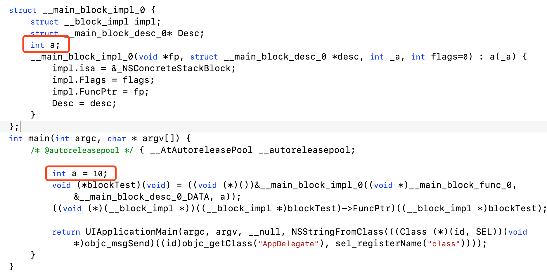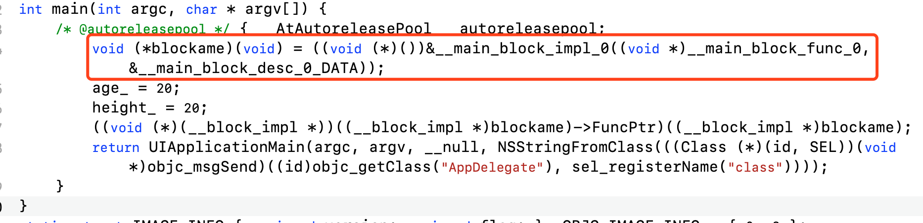 那么block内部的self会被捕获到吗?同样,转成C++的代码如下: