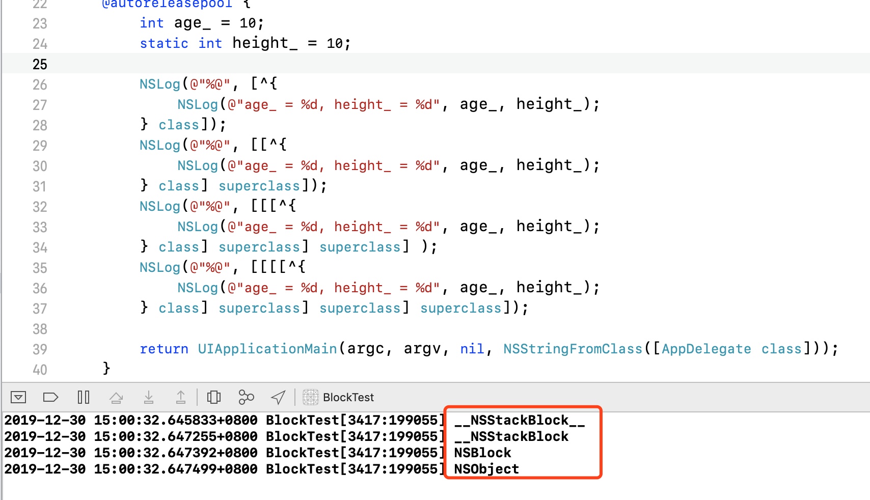 block有三种类型,可以通过class方法或者isa指针查看具体的类型,但是最终都是继承于NSBlock的类型。