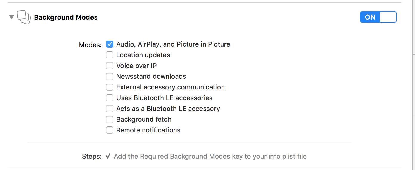 对了,还有一个小坑,就是AVPlayer光这么设置是不行的, 这个是针对音频的,视频的话,需要在applicationDidEnterBackground把AVPlayer的AVPlayerLayer设置为nil , 如果AVPlayerLayer还存在的话 , 是不能进行后台播放的. 同理,applicationWillEnterForeground需要在把AVPlayerLayer与AVPlayer关联起来.