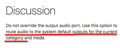 AVAudioSessionPortOverrideNone:我的理解是将音频输出设置听筒,系统默认应该就是听筒,因为官方文档给出的解释是: