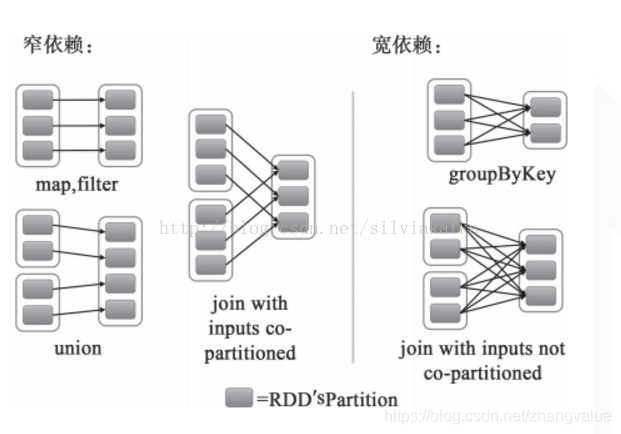 从父RDD角度看:一个父RDD只被一个子RDD分区使用。父RDD的每个分区最多只能被一个Child RDD的一个分区使用
