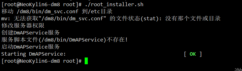 利用脚本进行dmap服务注册并启动,在完整的软件安装过程中,在完成安装前原本应该以root身份运行脚本来注册启动dmap的。脚本在$DM_HOME/script/root目录下。