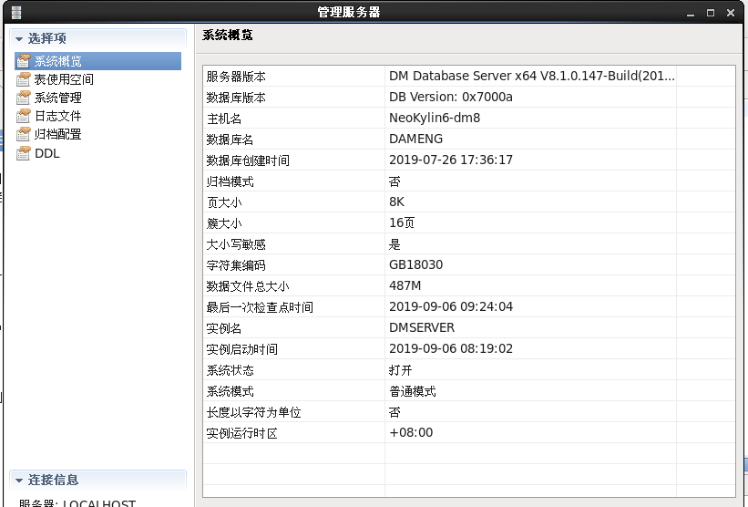 • 图形化界面工具查看 manager登录数据库后,右键左侧导航栏的根节点,选择管理服务器。在弹出的tab页面中, 有一个条目是对数据库服务器的字符集的说明。
