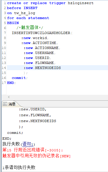 我们写触发器的时候,可能会到错误:触发器中引用无效的伪记录名[NEW]