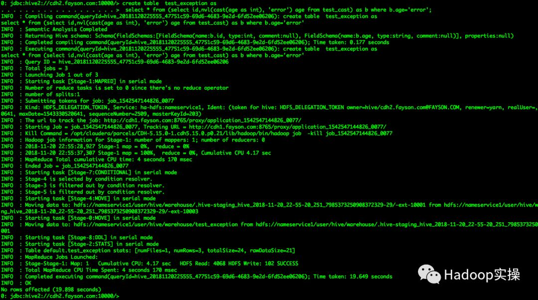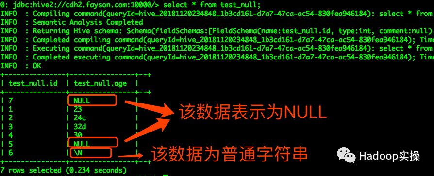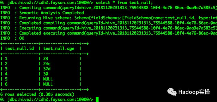 通过如上方式我们可以检索出test_cast表中age列类型转换异常的数据,通过每条数据的ID查找对应的原始数据找到问题原因。在上述过程中还出现了另一个问题Hive中NULL和空值是如何处理的?如下Fayson再介绍下Hive中对着两个值的处理。