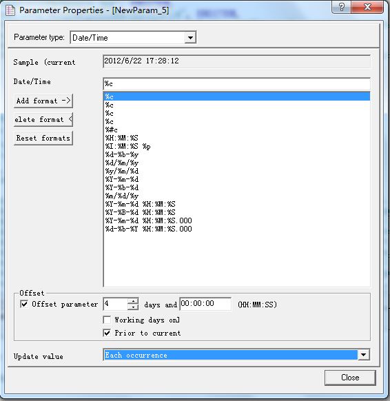 如果我们要参数化的不是一个文件,比如是特定的日期时间,可以从Parameter type 列表中进行选择