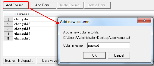 点击“Add Column…”,添加新的一列信息,用于放置密码。
