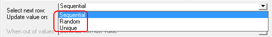 | 随机(Random) | 每次出现(Each occurrence) | 结果:表中写入15条数据,但可能有重复数据出现 功能说明:每次从参数化文件中随机选择一行数据进行赋值 |