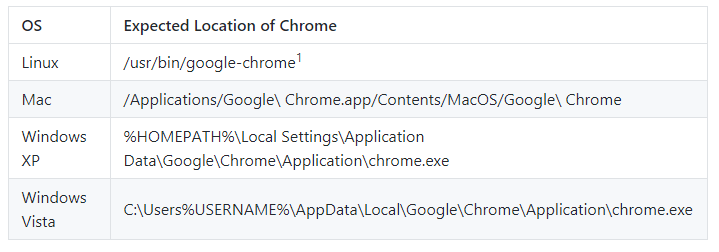1For Linux systems, the ChromeDriver expects /usr/bin/google-chrome to be a symlink to the actual Chrome binary.