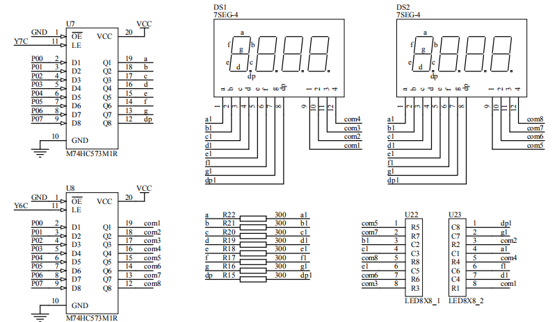 首先从官方原理图中找到DS1和DS2数码管原理图,如下: