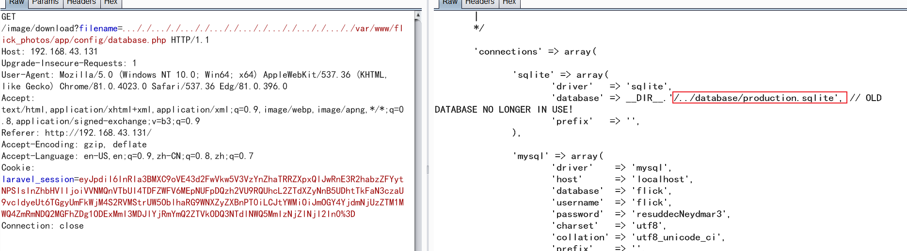 需要说明的是靶机发布时间为2014年,那时的Laravel框架目录结构与如今不同。 -