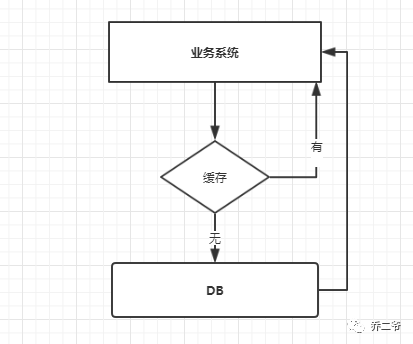 我们使用缓存时,我们的业务系统大概的调用流程如下图: