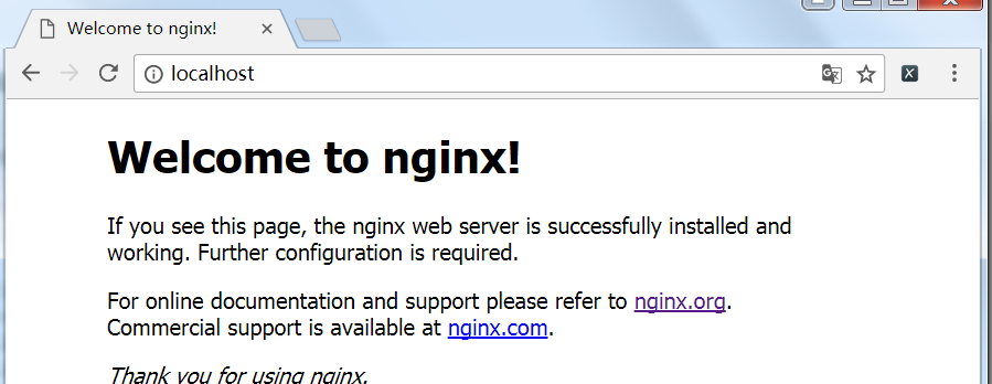 打开浏览器,输入地址:http://localhost,访问页面,出现如下页面表示访问成功