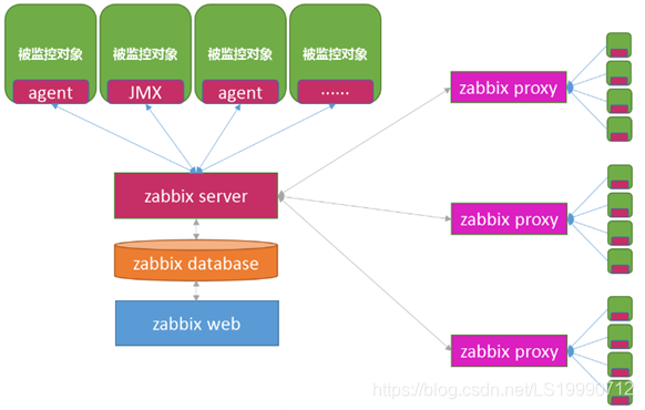 分布式的监控体系:监控数据被提交给zabbix proxy 再 提交给zabbix server