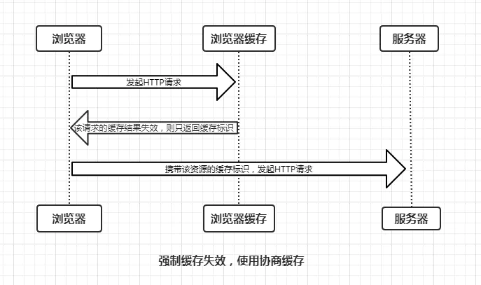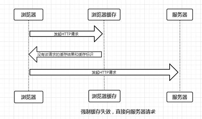 ①不存在该缓存结果和缓存标识,强制缓存失效,则直接向服务器发起请求(跟第一次发起请求一致),如下图: