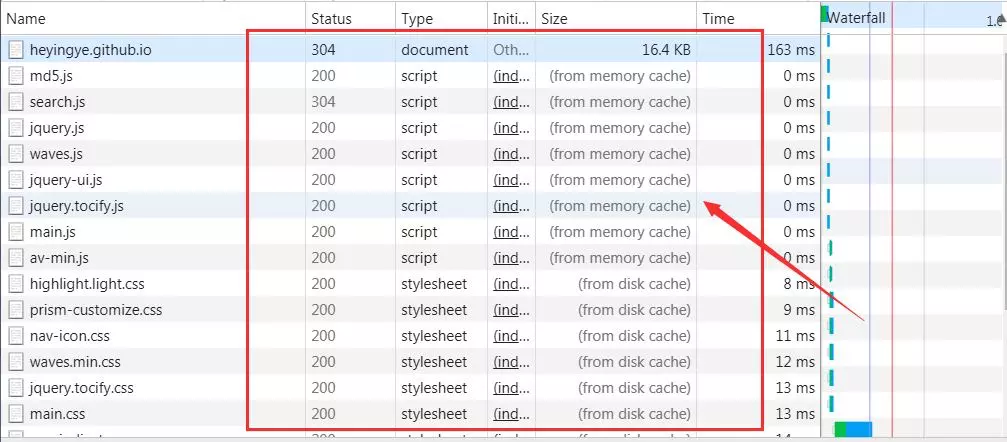from memory cache代表使用内存中的缓存,from disk cache则代表使用的是硬盘中的缓存,浏览器读取缓存的顺序为memory –> disk –> 服务器请求。