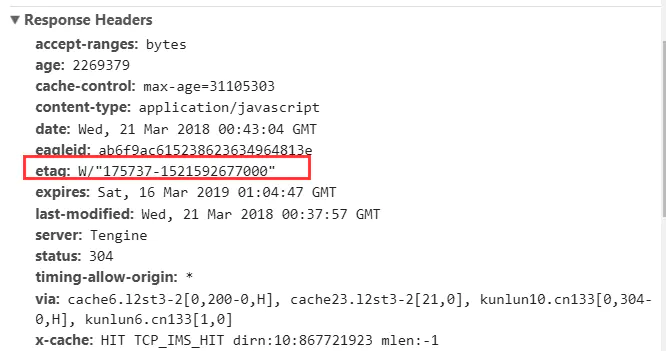 Etag是服务器响应请求时,返回当前资源文件的一个唯一标识(由服务器生成),如下。