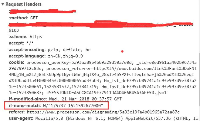 If-None-Match是客户端再次发起该请求时,携带上次请求返回的唯一标识Etag值,通过此字段值告诉服务器该资源上次请求返回的唯一标识值。服务器收到该请求后,发现该请求头中含有If-None-Match,则会根据If-None-Match的字段值与该资源在服务器的Etag值做对比,一致则返回304,代表资源无更新,继续使用缓存文件;不一致则重新返回资源文件,状态码为200,如下。