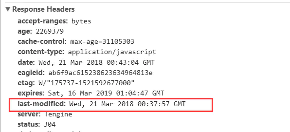 Last-Modified是服务器响应请求时,返回该资源文件在服务器最后被修改的时间,如下。